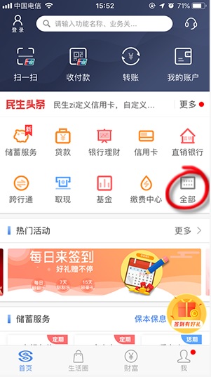 1。登錄民(mín)生銀行手機APP,選擇“全部”;